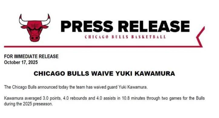 今年季前赛,河村只打了五场里的前两场,场均11分钟的时间里拿到3分4板4助1.5失误,看着数据不算太难看,但命中率惨不忍睹——投篮16.7%,三分25%,罚球75%。进攻端投不进,防守端又因为身高短板被对手反复针对,公牛后场本就有科比-怀特的固定轮换,多森姆和卡特还在旁边虎视眈眈,他这点表现根本不够看。之前公牛签他,多少是因为科比-怀特受伤缺阵,等主力归位,他自然成了多余的人。
