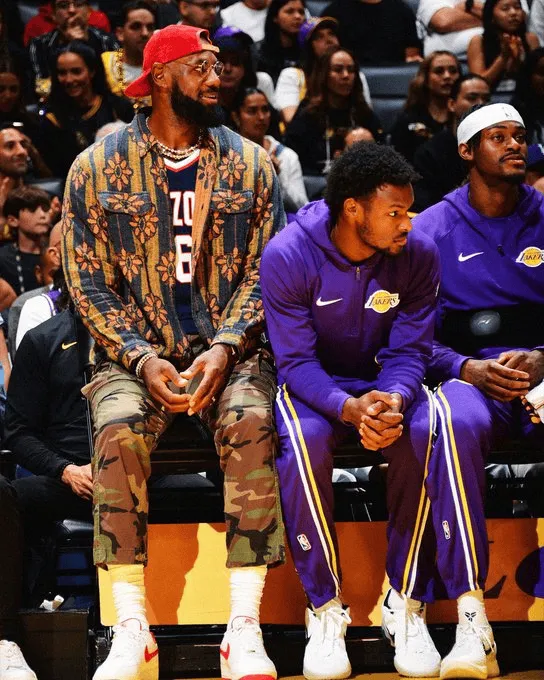 “勒布朗-詹姆斯。他身旁是布朗尼-詹姆斯。他身穿布莱斯-詹姆斯球衣。詹姆斯家族,血脉相连。”NBA官方附文道。