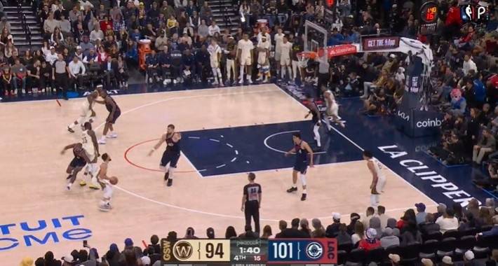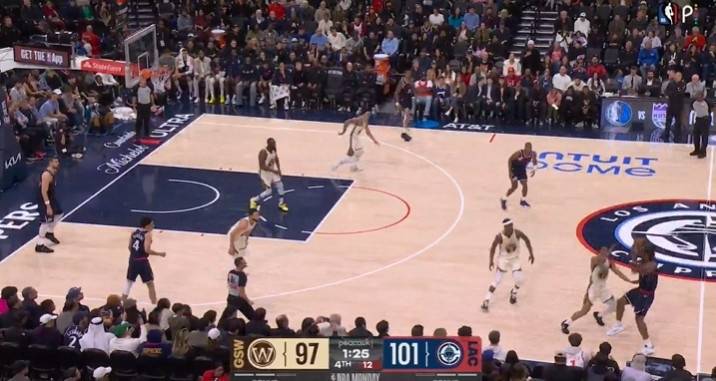 比赛还剩下1分25秒时,快船发动进攻。裁判报告指出,格林在身边没有明确防守人的情况下在禁区待的时间过久,应该吹罚防守三秒违例。