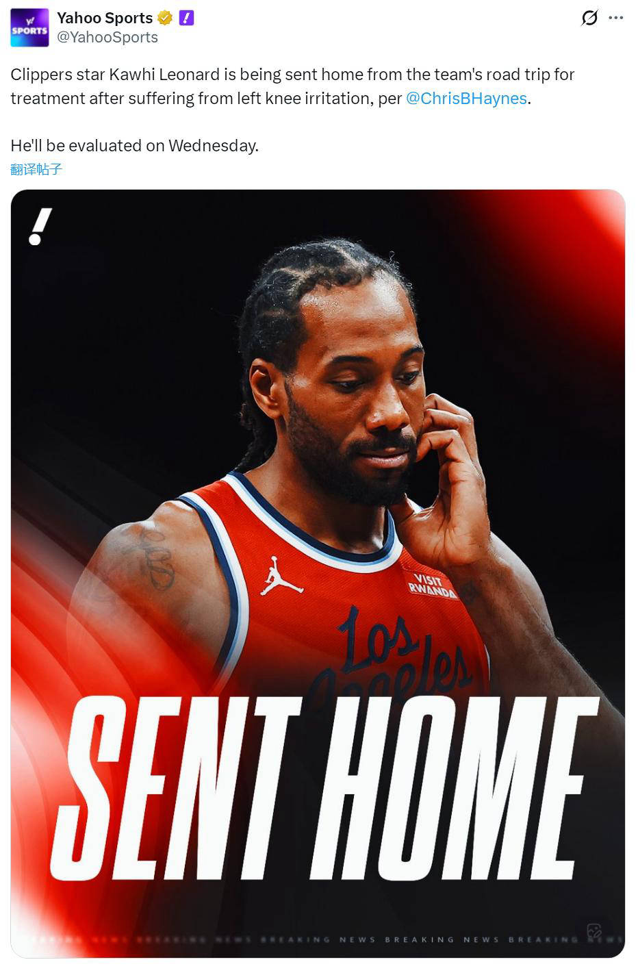 188金宝博,金宝博,188金宝博体育,188金宝博官方网站,188金宝博app下载,金宝博体育,金宝博网站,金宝博链接,188金宝博网址,188金宝博黑款,金宝博入口,金宝博登录,体育投注,足球投注北京时间1月19日凌晨,NBA知名记者Chris Haynes报道,洛杉矶快船球星科怀·伦纳德因左膝挫伤提前离队,紧急飞回洛杉矶接受治疗,并计划在三天后进行更深入的健康评估。目前快船正处于连续三个客场的征程中,而伦纳德已连续缺席包括上一场对猛龙比赛在内的多场比赛,接下来对阵奇才和公牛的比赛他也将无缘出场。